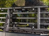 Sure, you could just throw a spare tire in your bed and call it a day. But that’s problematic for a couple of reasons. First, you’re sacrificing all of your rear cargo space by doing that. And second, it’s not the safest method. That’s why a spare tire carrier is a must. This one installs to the headache rack, directly behind your head. It frees up your cargo area so you still have somewhere to put your tools, cooler, or other gear. Your spare tire will be out of the way while you ride, and it moves with the headache rack when you convert between three and six-seat modes. You’ll have easy access the next time you get a flat.