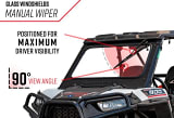 “I’m sick of having a windshield!” said no one ever. Improve your view with our Polaris General Glass Windshield. Get protection from dust, dirt, and sand no matter where you ride. We use DOT-approved laminated safety glass so you know it’s sturdy. You’ll get a wide viewing angle to see the trail. It even comes with a hand-operated wiper so you’ll be ready for rain and mud.