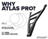 SuperATV Polaris Ranger XP 1000 Atlas Pro 1.5" Rear Offset A-Arms transform your rig from a workhorse to a work monster! They give you room for 32” rear tires without a lift thanks to the offset, and they improve ground clearance too. But they’re called Atlas Pro because they’re the strongest damn A-arms on the planet. The 1.5” diameter tubing is virtually unstoppable.