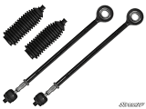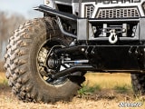 Beefy A-arms require beefy axles and tie rods. SuperATV Rhino axles are as tough as they come with oversized joints and end-to-end chromoly construction. SuperATV pair them with solid steel tie rods that use tougher heim joints. It’s an impressive suspension overhaul.