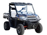 When it comes to UTV windshields, there’s no better choice than polycarbonate. Their 1/4” polycarbonate windshields are 250 times stronger than glass and twenty-five times stronger than acrylic. Rollovers, flying rocks, and even bullets are no match for this windshield, so you can ride without worry.