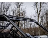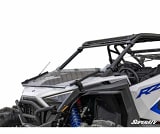 The best part about SuperATV's Flip Down Windshield for the Polaris RZR PRO XP is that it's really two windshields in one. It's a full windshield that easily converts to a half windshield from inside the cab. Just flip it down and strap it down. It won't rattle or bounce while you ride. That means you can keep it on your UTV all year round—this polycarbonate windshield does it all.