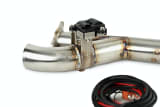 The package includes all the necessary parts to seamlessly mount the Side Piece onto your vehicle. It comes with a header flange, a wiring harness, and a custom Trinity switch for easy operation. The electronic valve is directly welded to the header pipe, ensuring durability and longevity. Additionally, a stainless steel turn out pipe, a crushable Cometic gasket for the muffler to header connection, and a header made of 304 stainless steel are included in the package.