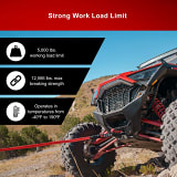 Tusk Kinetic Recovery Rope is designed for off-road recoveries, offering powerful, safe, and smooth vehicle extractions. Made of double-braided nylon, it stretches up to 35% to reduce shock loads during towing. Its high strength, durable construction, and included vented carry bag make it an essential recovery tool for any adventure.