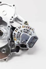 This bolt-on kit comes with everything you need, including a billet magneto cover, a 75-amp alternator, billet mounting brackets, billet pulleys, billet belt cover, ARP mounting bolts, and a Gates pulley belt. All alternators are shipped with pre-installed hardware such as an oil seal, shaft, water pump gear and impeller, and cover gasket.